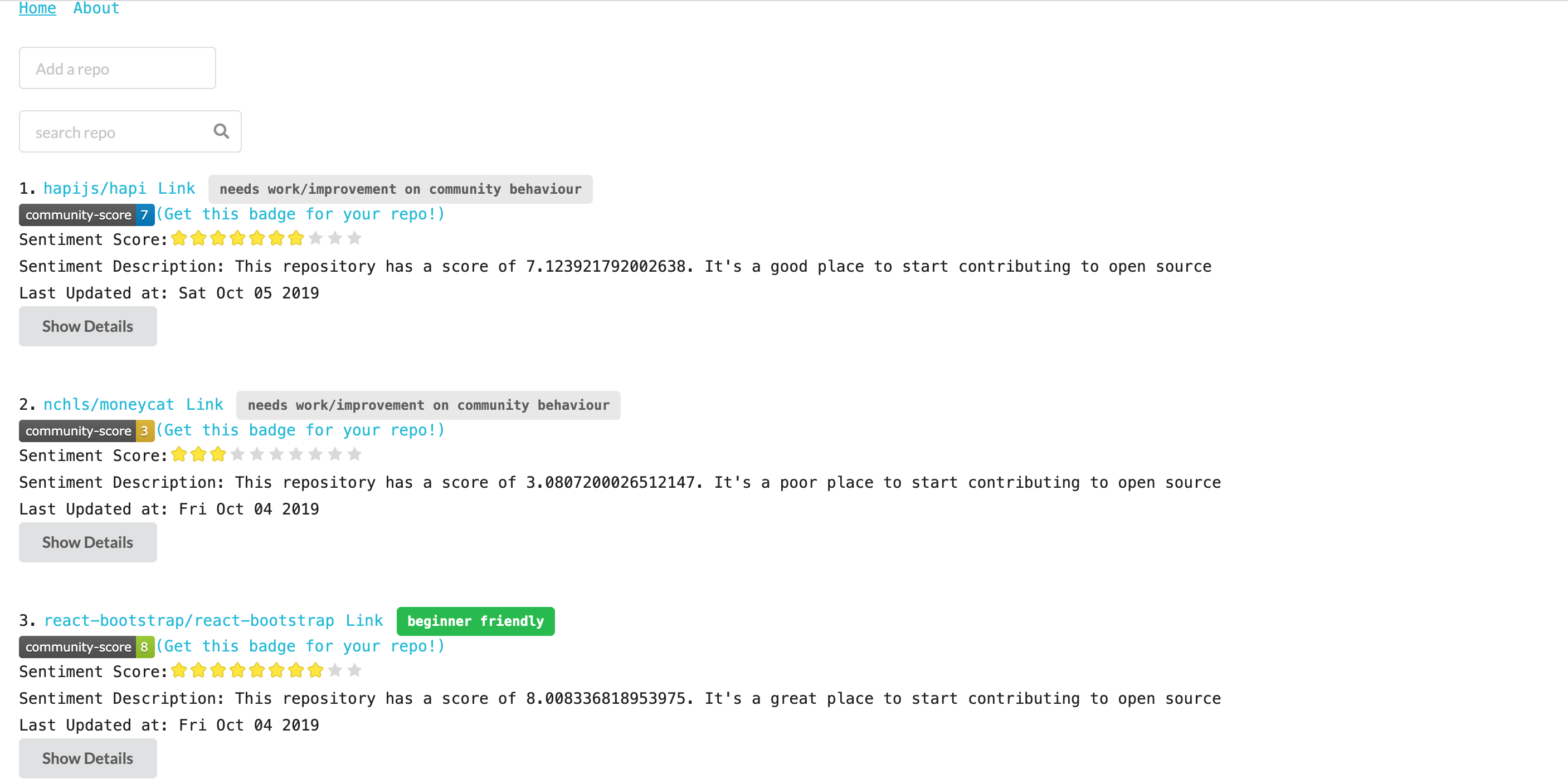 React SSR app that detects sentiment of Github open source communities. Feature wise sentiment scoring and toxicity detection using tensorflow.js.