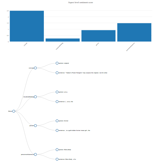 This information is then visualized using D3.js (for the logical aspect tree) and plotly.js (for the sentiment scores).